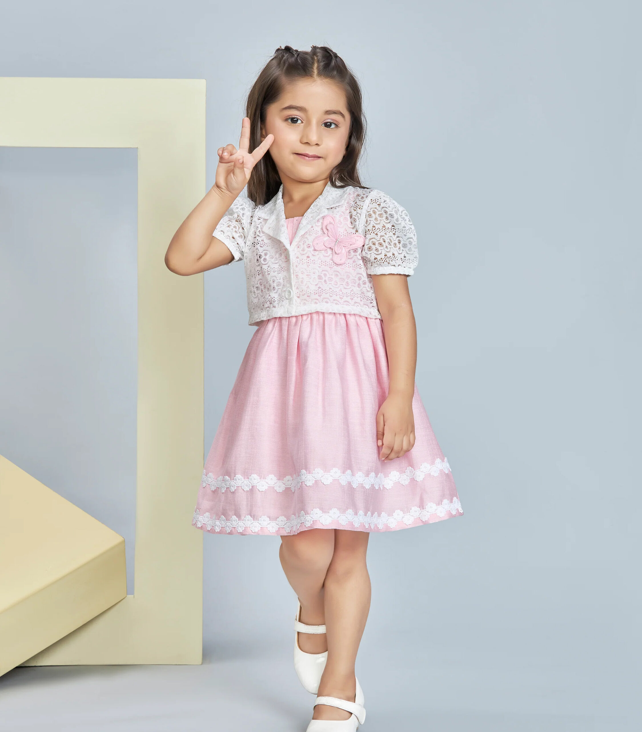 Light as a breeze, this sky blue frock adds a calming touch to playtime, parties, or picture days.