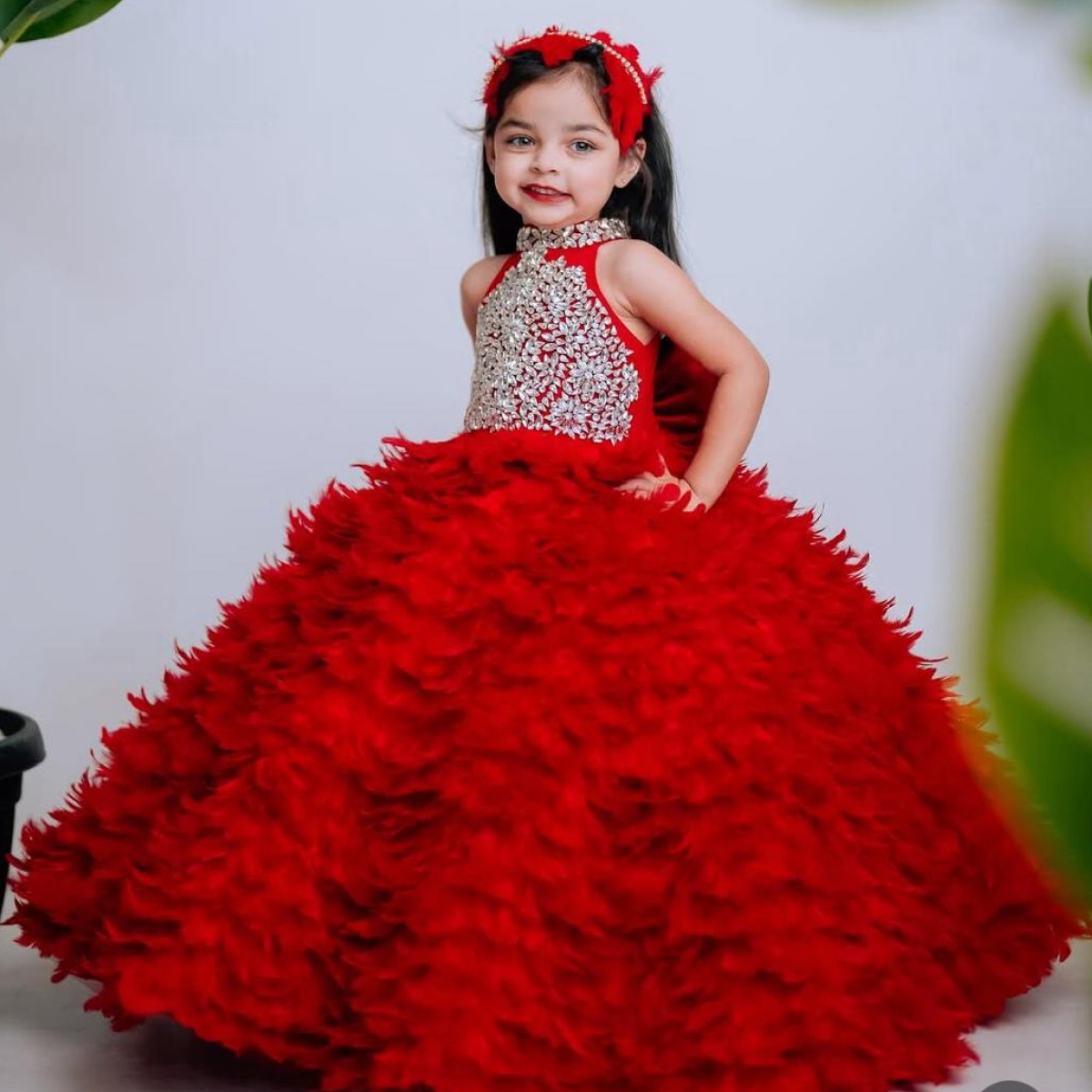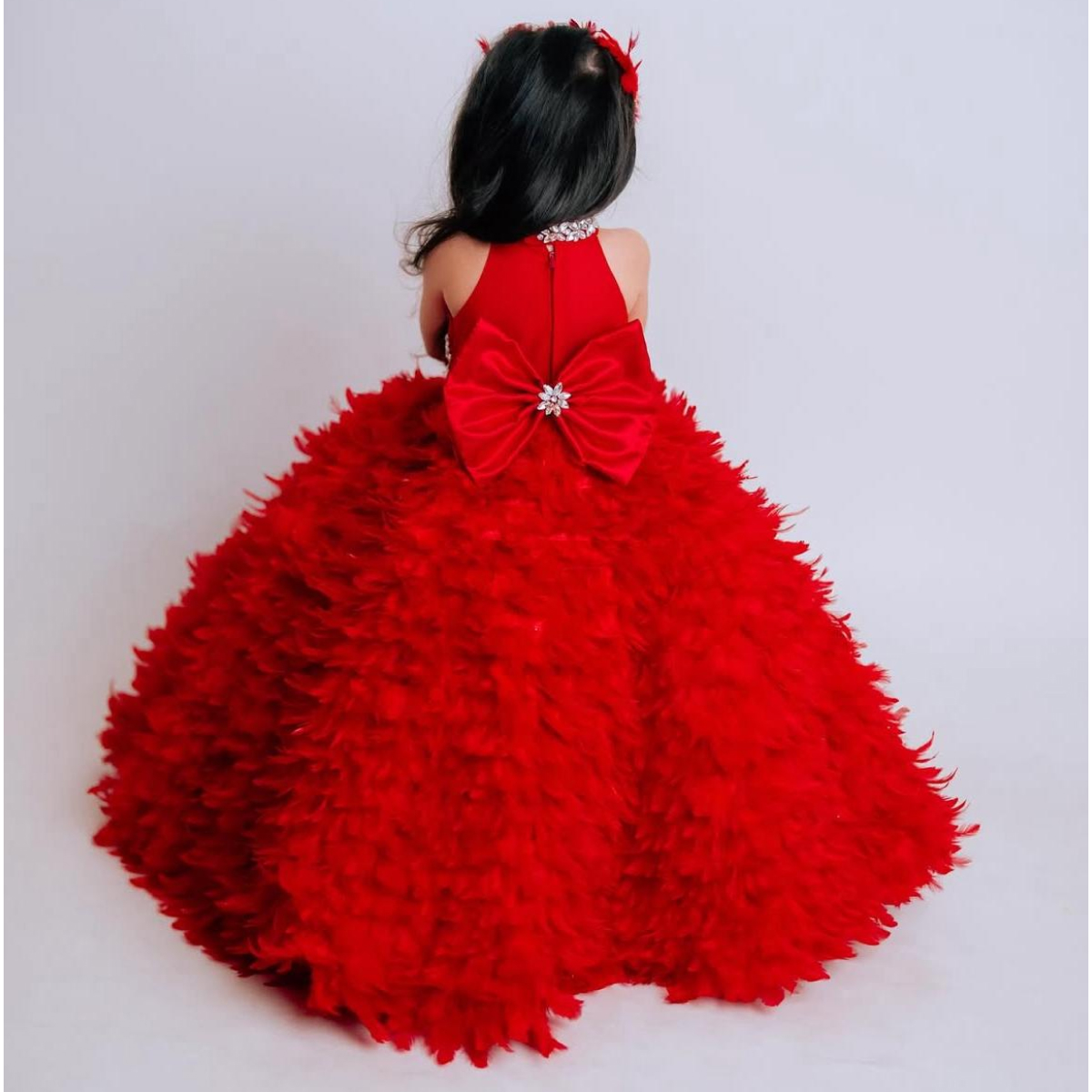 Radiant in red, this frock is made to stand out—ideal for flower girls who bring love and sparkle to every step.
